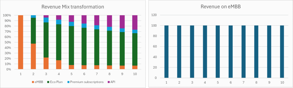 Most operators recognize the potential of network slicing, but monetization remains challenging. Slicing monetization could be achieved through the transformation from the current eMBB toward differentiated data connectivity or through monetizing different performance levels through slicing, for example, if we look at the figure below (Figure 1) , the difference between staying on the current eMBB business vs the transformation toward a consumer-oriented business